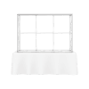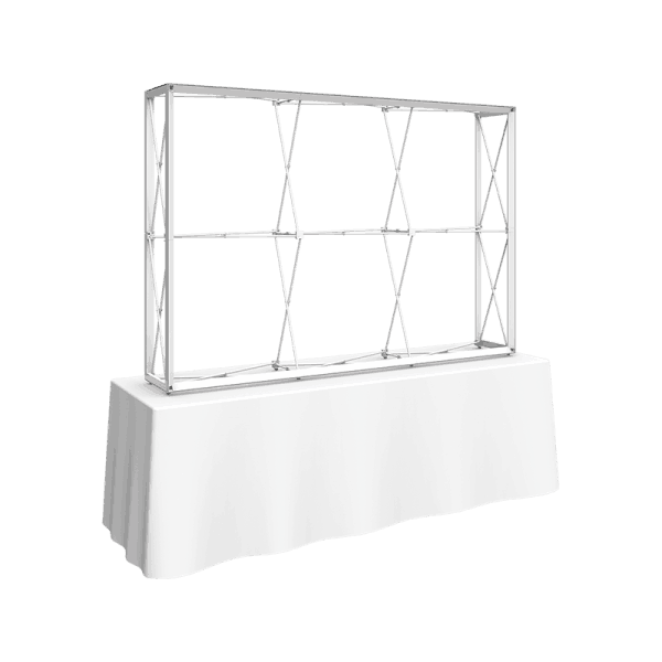 – Perimeter channel bars connect to frame while holding the push-fit fabric graphics